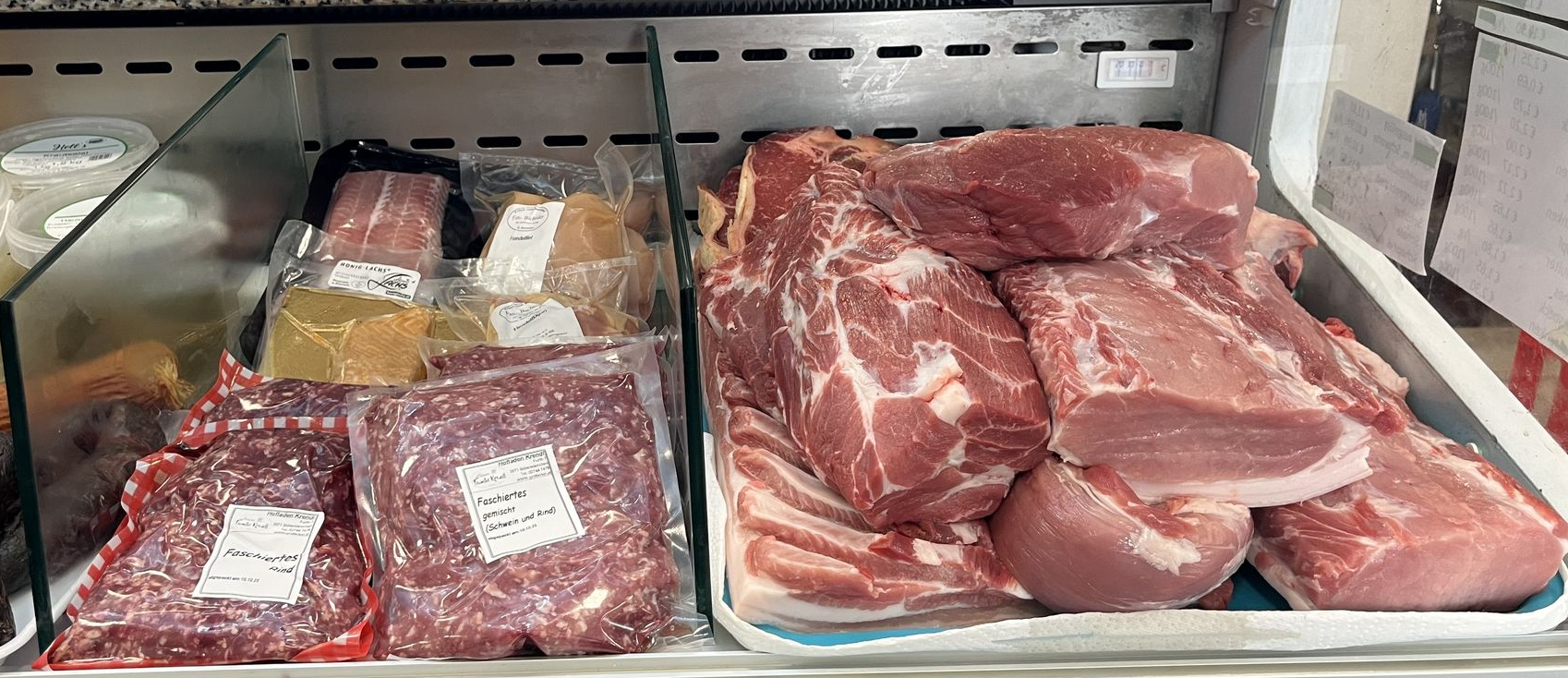Im Bauernladen finden Sie viele unterschiedliche Produkte der unten aufgezählten Frischfleischarten: