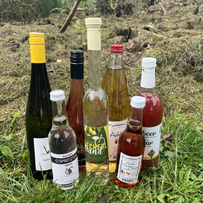 Im Bauernladen gibt es viele unterschiedliche Getränkesorten: