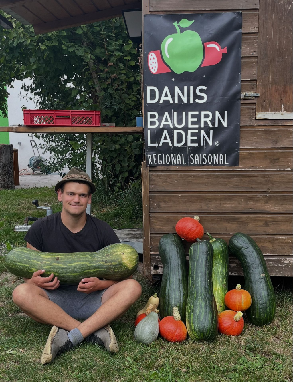 Robin, der Sohn von Daniela Eibel, hat mit gerade einmal 15 Jahren seine Liebe zum Gemüseanbau entdeckt – und lebt sie seitdem jeden Tag. Seit 2025 ist er fester Bestandteil unseres Bauernladens und bringt frischen Schwung ins Team. Mit viel Liebe, Fleiß und einem grünen Daumen baut er zahlreiche Gemüsesorten selbst an. Genau diese frischen Köstlichkeiten finden Sie direkt bei uns im Laden.